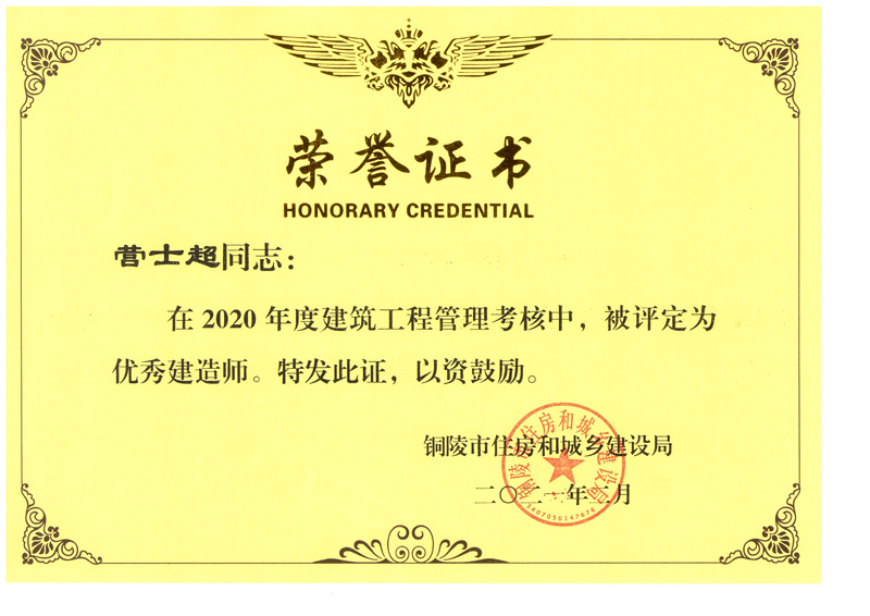 • 銅陵市2020年度優(yōu)秀建造師(營士超)